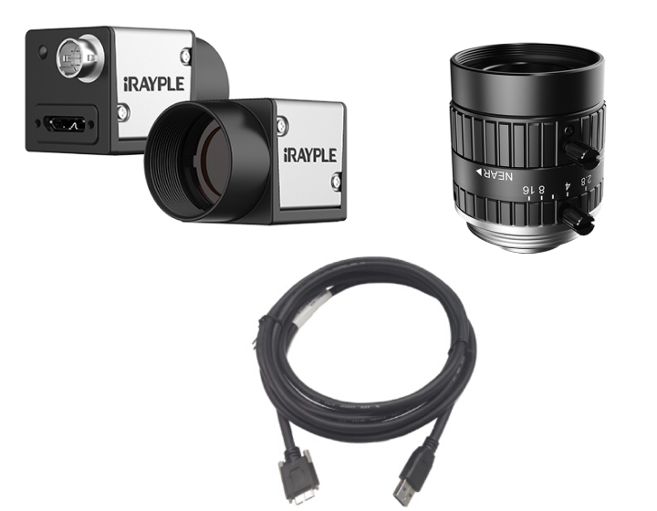 1.6MP/249fpsのiRAYPLEモノクロカメラのセット。精度の高い16mmのレンズが付属しており寸法測定等に最適です。