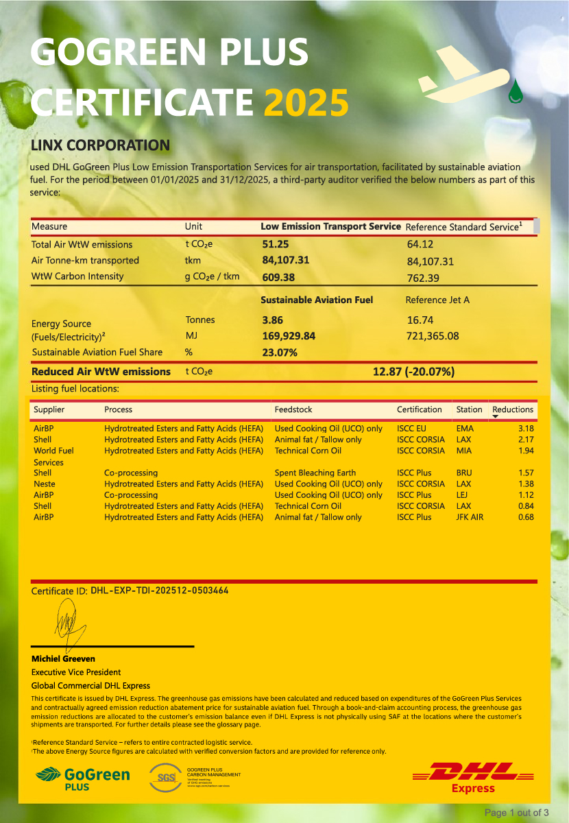 株式会社リンクスでは、温室効果ガスを削減する取り組みとしてDHLグループの輸送サービス「GoGreen Plus」を2024年2月より導入いたしました。
